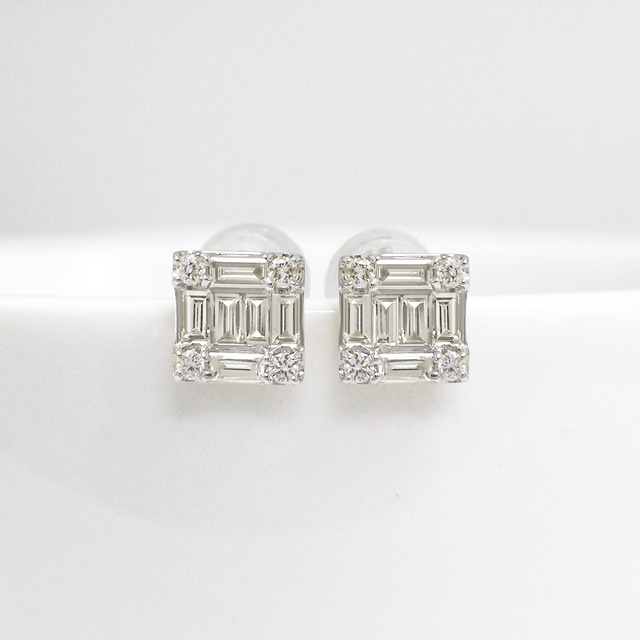 ---------------------------------------------------------- ※ご注文から作製するため、お届けまでに約3~4週間いただいております。あらかじめご了承下さいますようお願いいたします。 ---------------------------------------------------------- バゲットカットダイヤモンド スクエア ピアス 透明感のあるバゲットカットダイヤモンドを、モダンなスクエアフォルムにセッティング。 直線的な輝きが耳元に知的な印象を添え、控えめながらも確かな存在感を放ちます。 シンプルで上質、そして時を超えて愛されるデザイン。 日常に寄り添いながらも、特別な瞬間をさりげなく引き立てるスクエアピアスです。 【素材】 PT900 【石】 天然ダイヤモンド 0.2ct×2(トータル0.4ct) (バゲットカット I~Kカラー 相当) (ラウンドカット Hカラー/SIクラス/Goodカットup 相当) 【サイズ】 タテ約5.5mm ヨコ約5.5mm 幅約1.8mm ポスト 太さ約0.7mm 長さ約10mm 【他】 pt900シリコンダブルキャッチ 石目・材質の刻印入り 当店発行品質保証書 【発送について】 約3~4週間、出来次第にお届けいたします 【製品番号】 op0128p 【生産国】 JAPAN