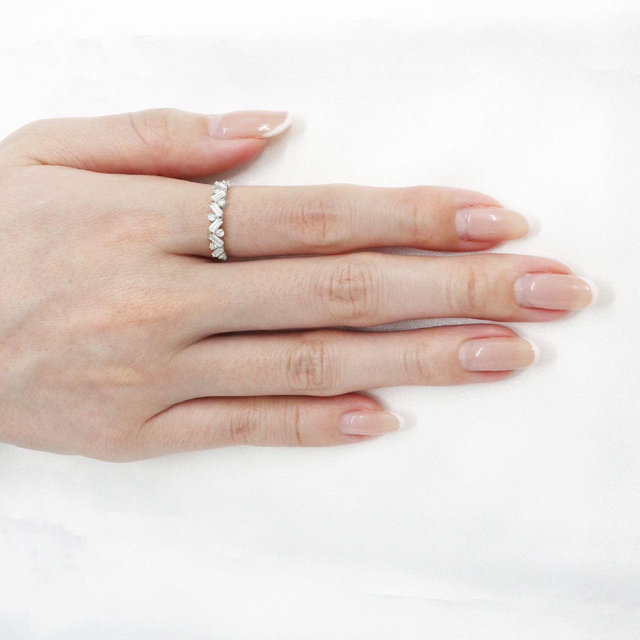 バゲットカットダイヤモンドのすっきりとした煌めきと、ラウンドカットのキラキラとした輝きを交互にセットし、リズミカルなデザインの新しいエタニティリングです。