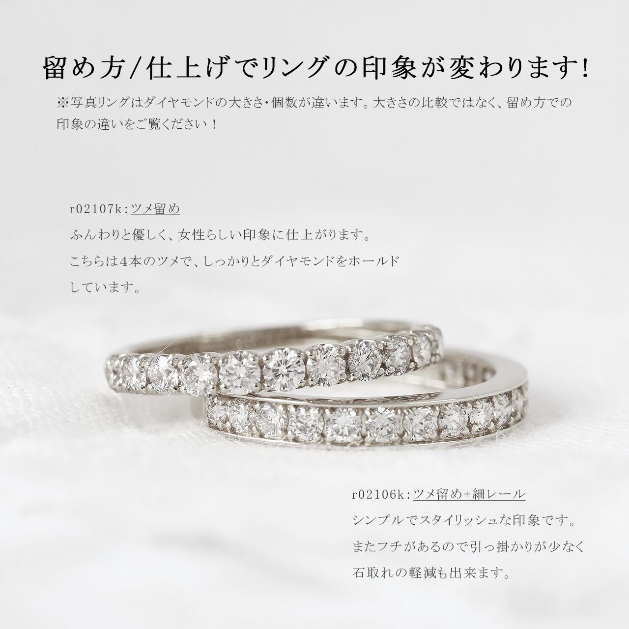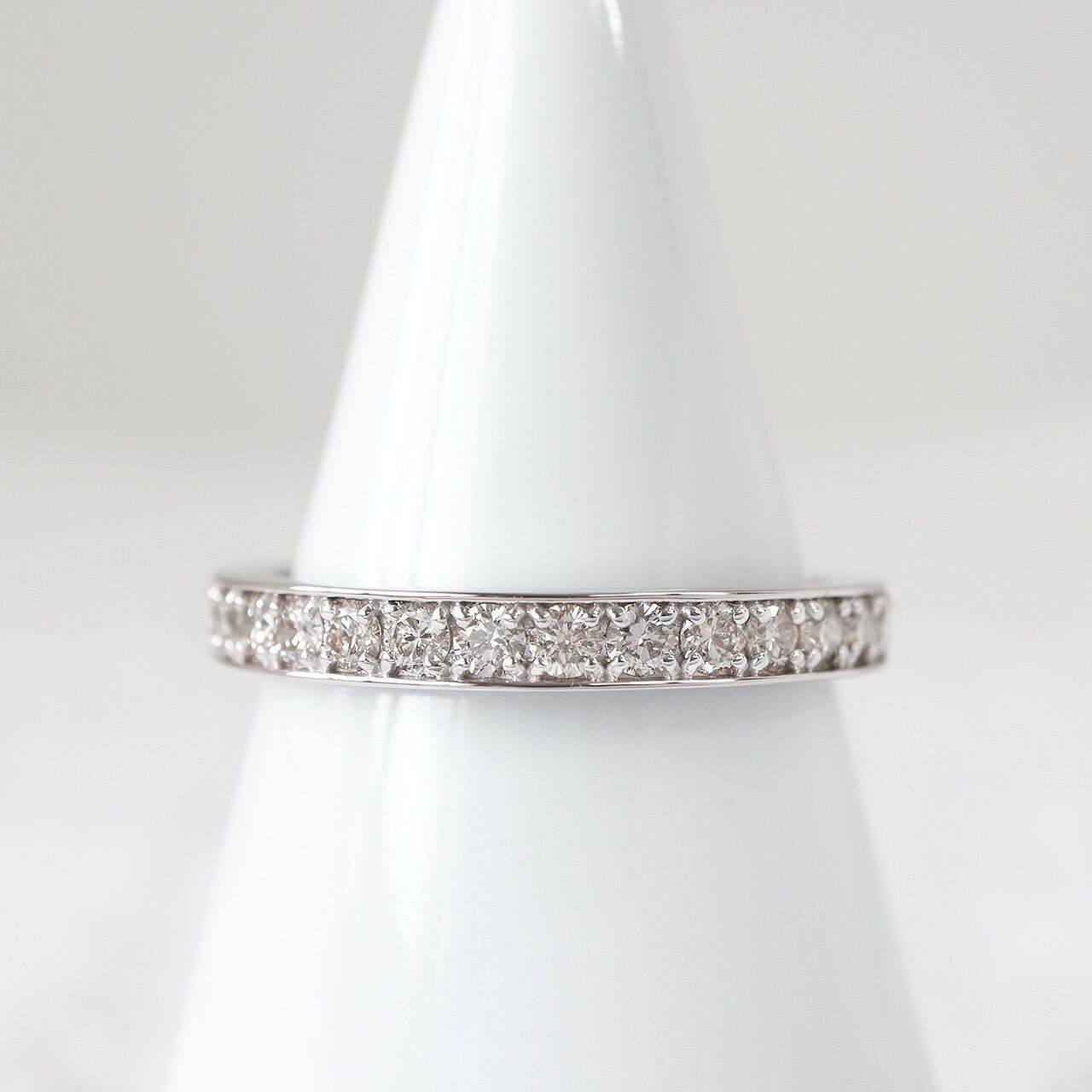 こちらはフチのあるエタニティリング、衣類等への引っ掛かりを軽減してすっきりとした印象のエタニティです。