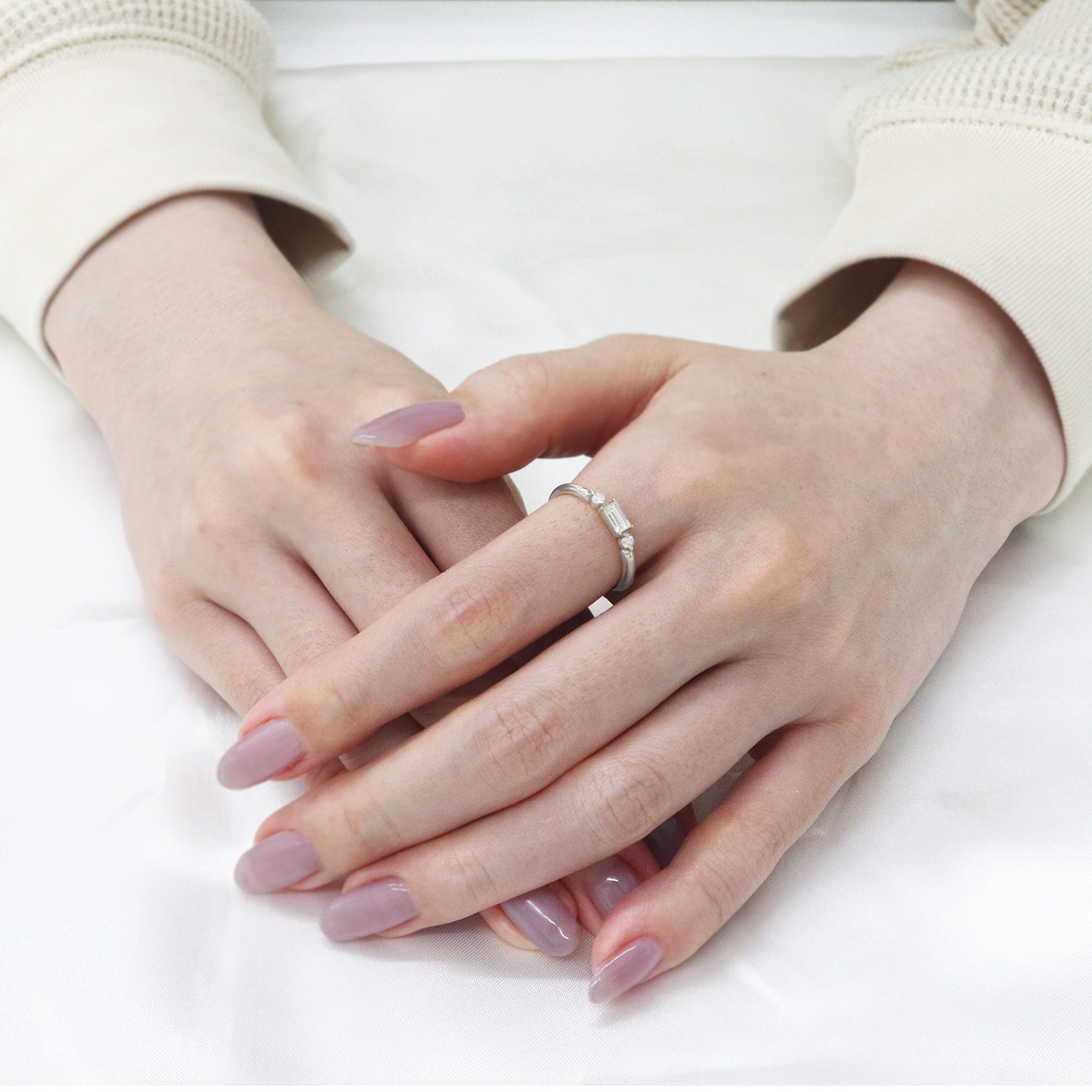 直線美が映えるシンプルリングは、ひとつでも重ね付けでも、指元に静かな個性を煌めかせます。