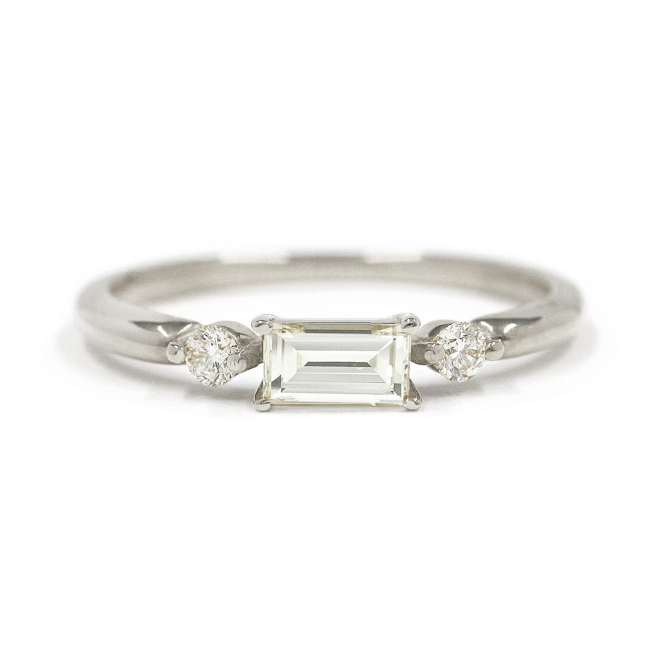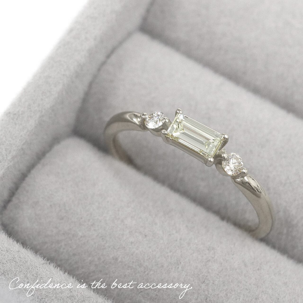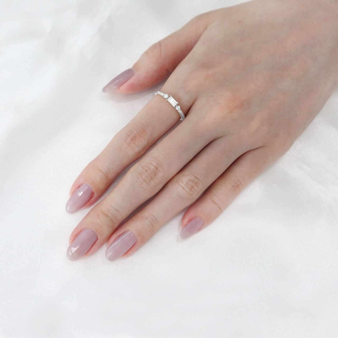 バゲットカットダイヤモンドが主役のクールなリングです。