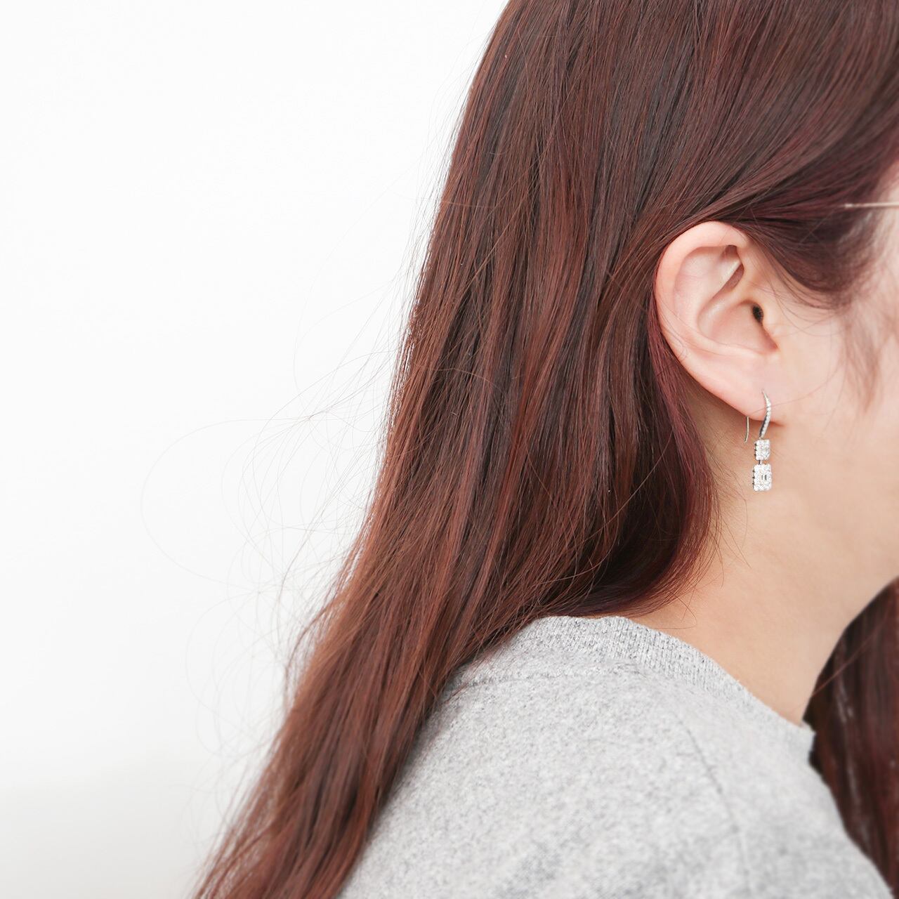 フック部分にまでメレダイヤモンドをセットした、贅沢で細やかな手仕事が大人の女性の美しさをより引き立ててくれます。