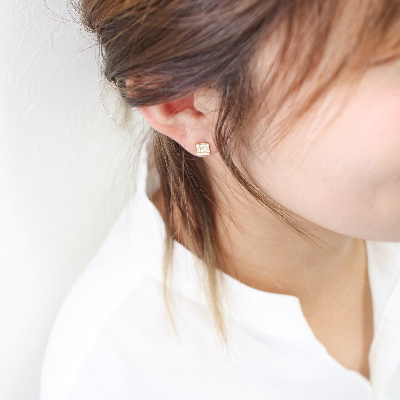 日常に寄り添いながらも、特別な瞬間をさりげなく引き立てるスクエアピアスです。