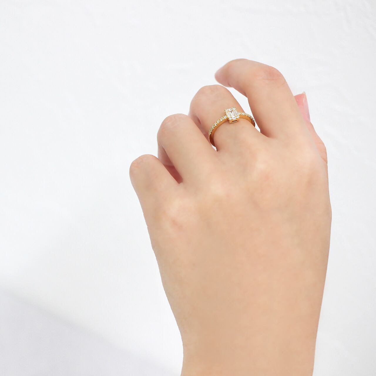 ぜひ、デイリー使いにお使いいただきたいバケットカットダイヤモンドのリングです。