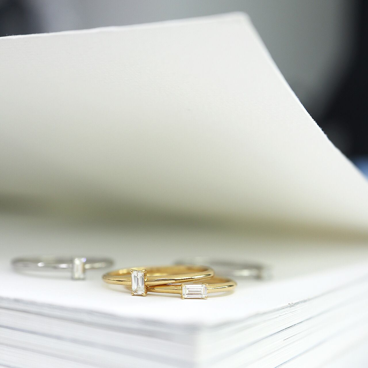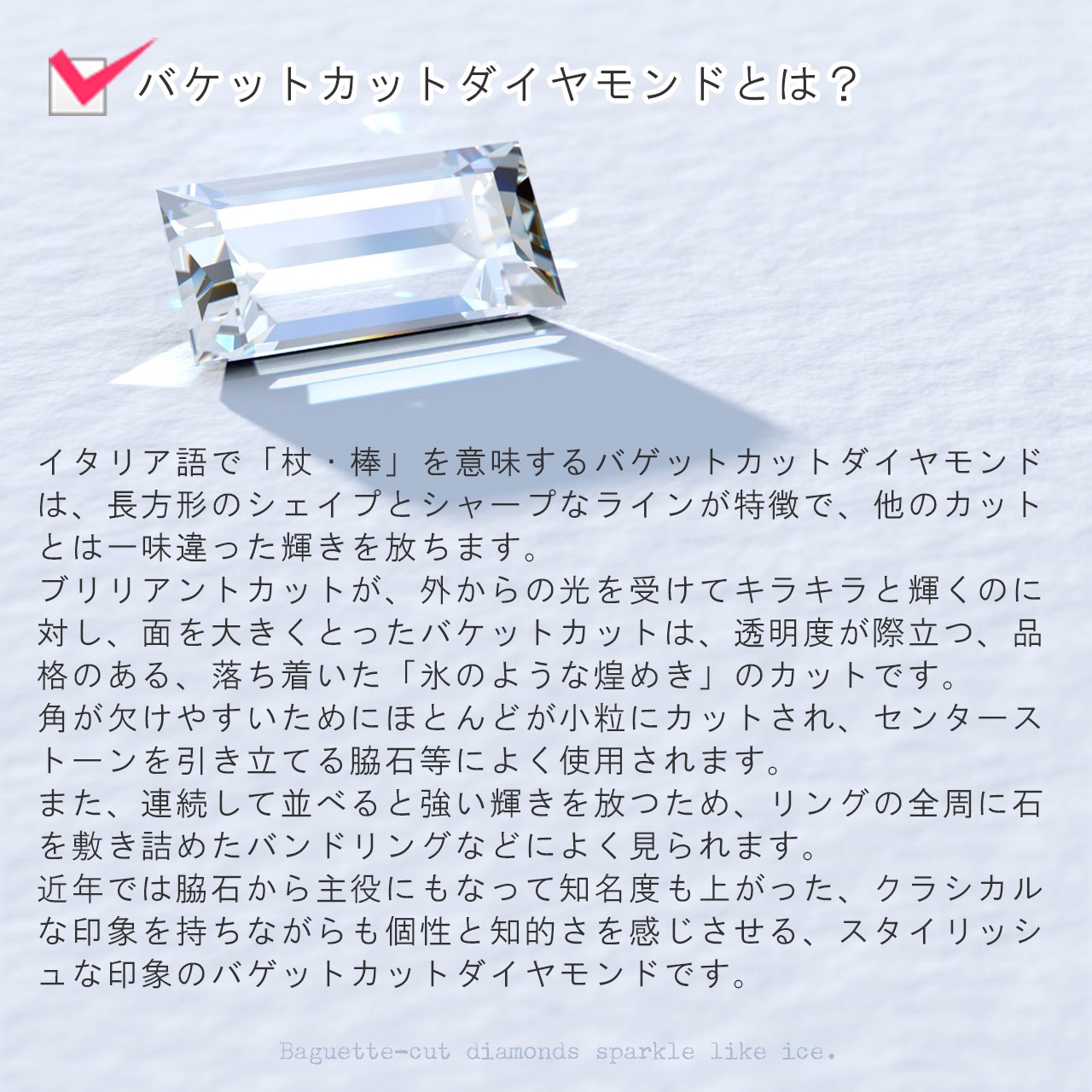 直線の美しさが際立つ、バゲットカットダイヤモンド。