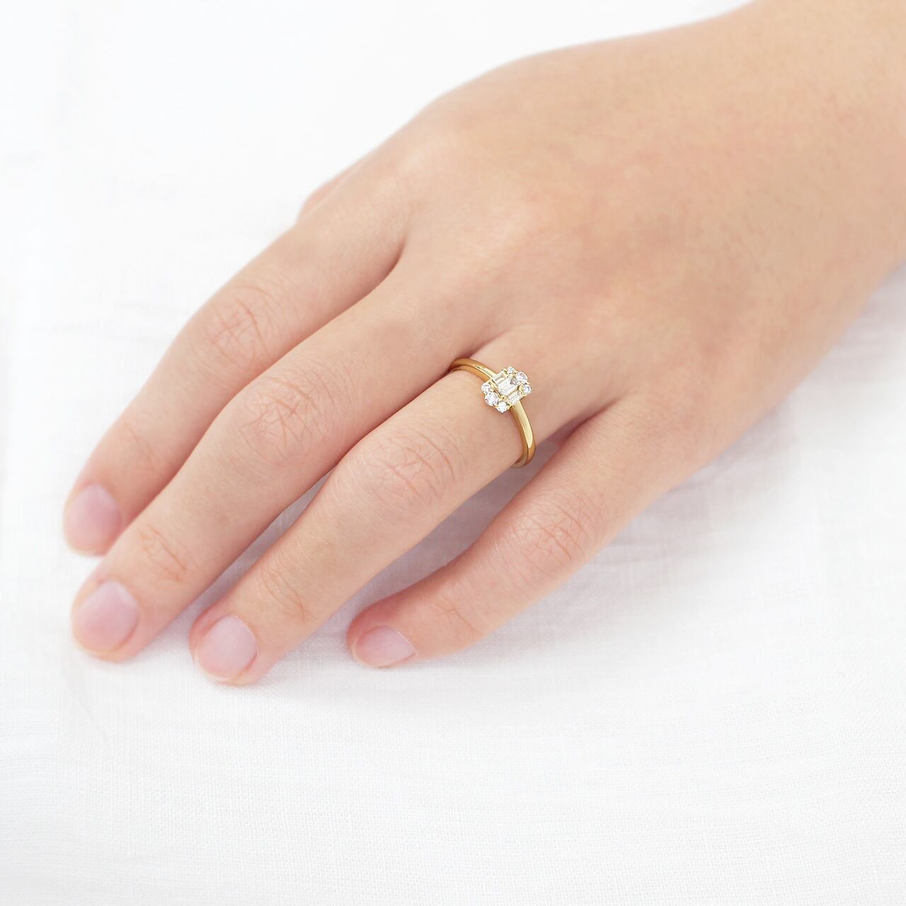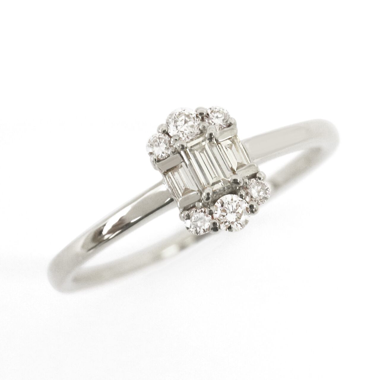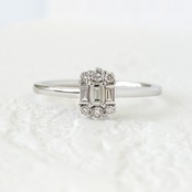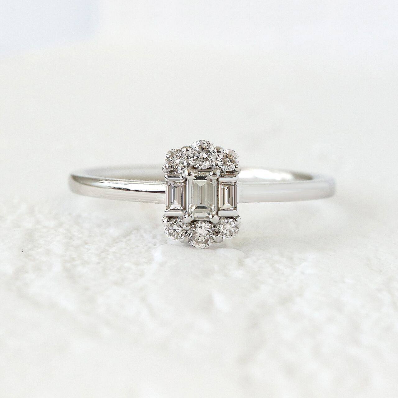氷のように澄んだ「煌めき」が美しいバゲットカットダイヤモンドが特徴のリングです。