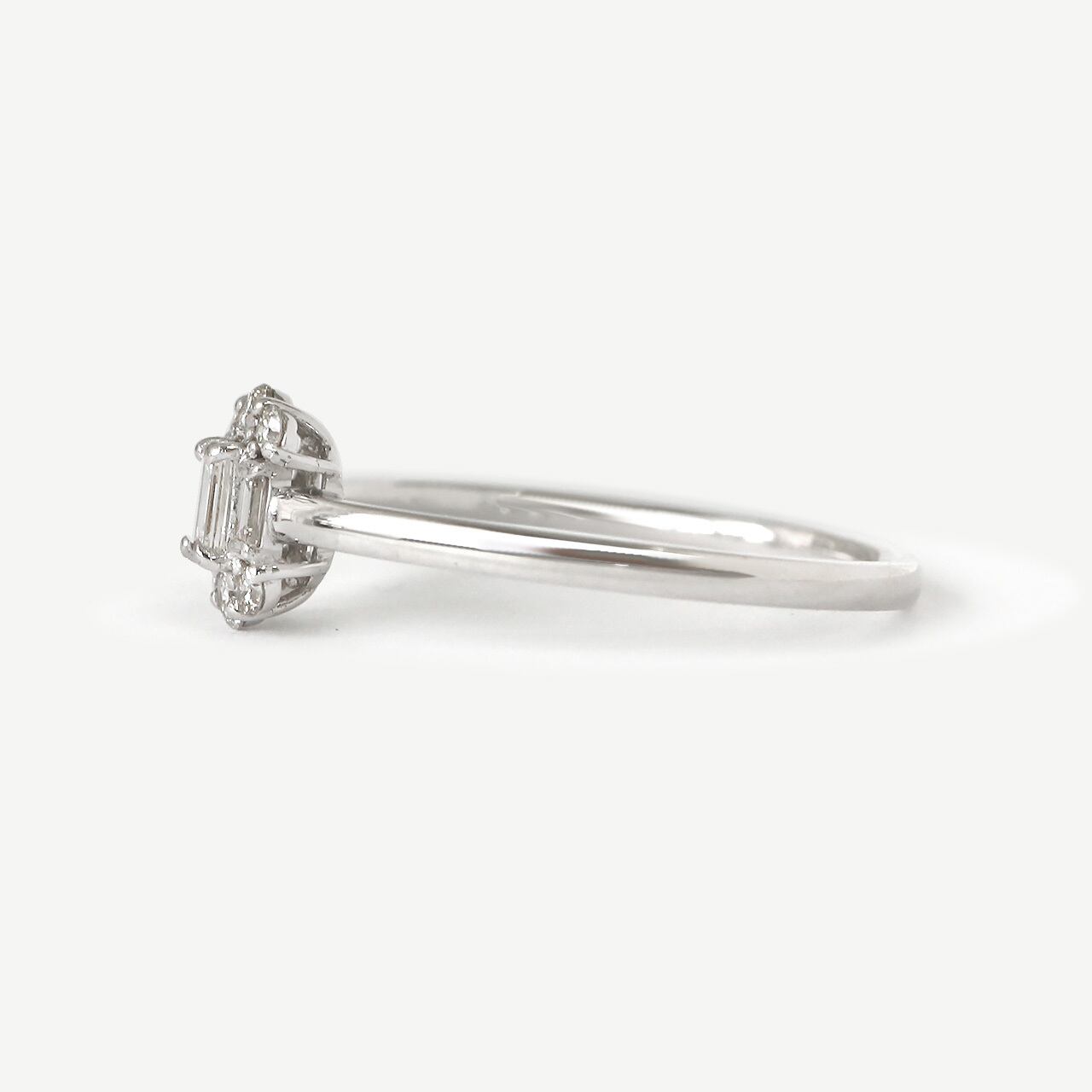 氷のように澄んだ「煌めき」が美しいバゲットカットダイヤモンドが特徴のリングです。