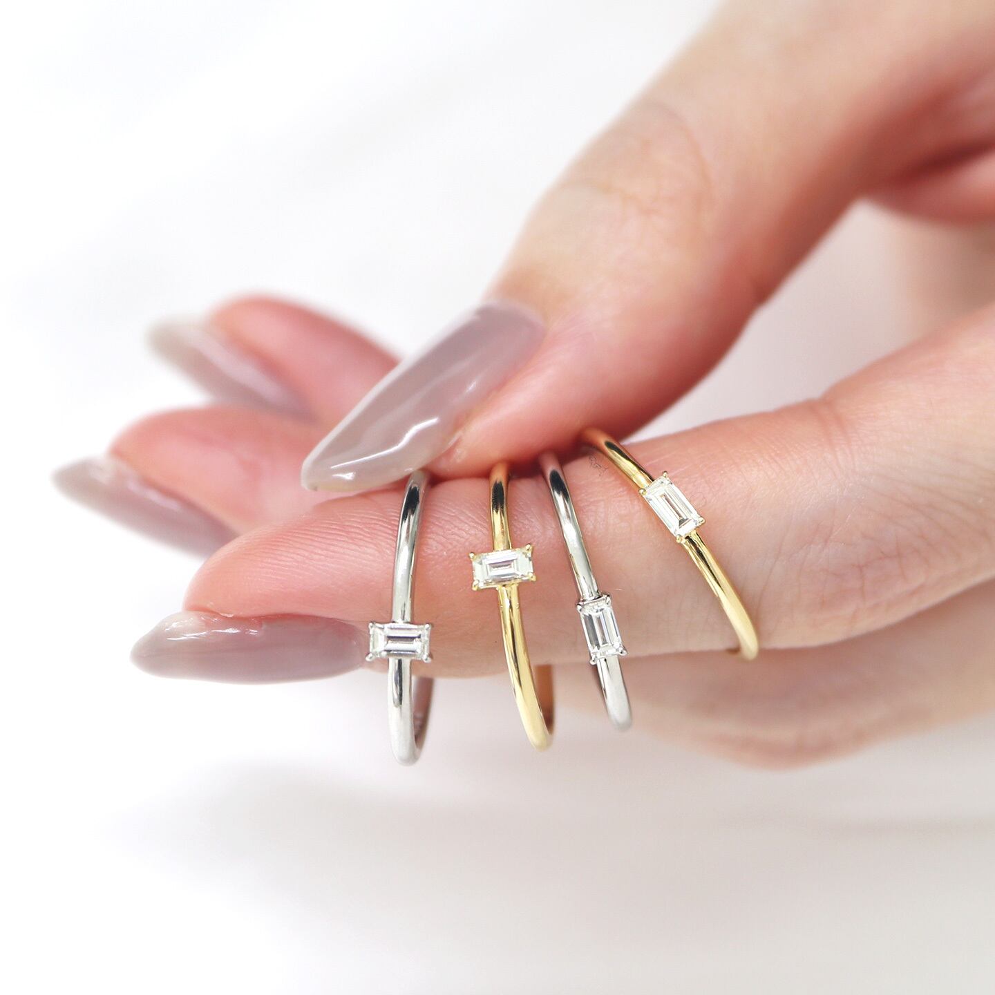 0.1ctの小ぶりなサイズながらも、凛とした輝きが指先を上品に彩ります。 シンプルでありながら、どこか個性的。丸みのあるラウンドとは異なる“透明感のある輝き”が魅力です。