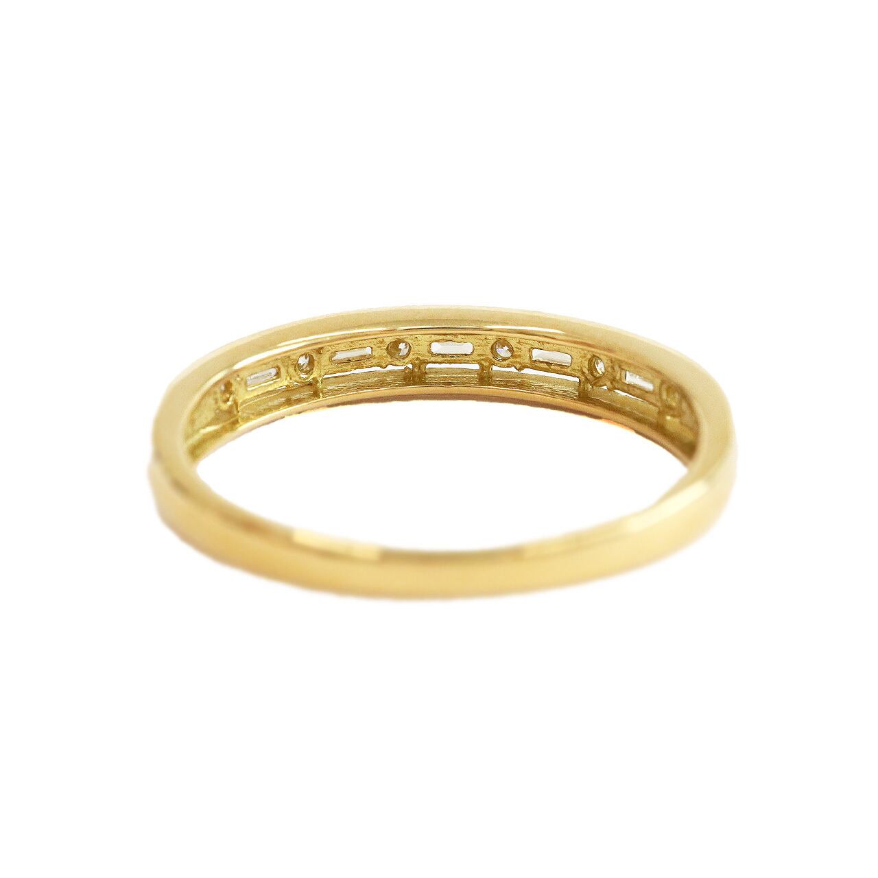リング枠とセンターの間にごく細い隙間を設けることで、すっきりとした抜け感を演出。シャープなバゲットカットの輝きがより引き立ち、手元を洗練された印象に見せてくれます。