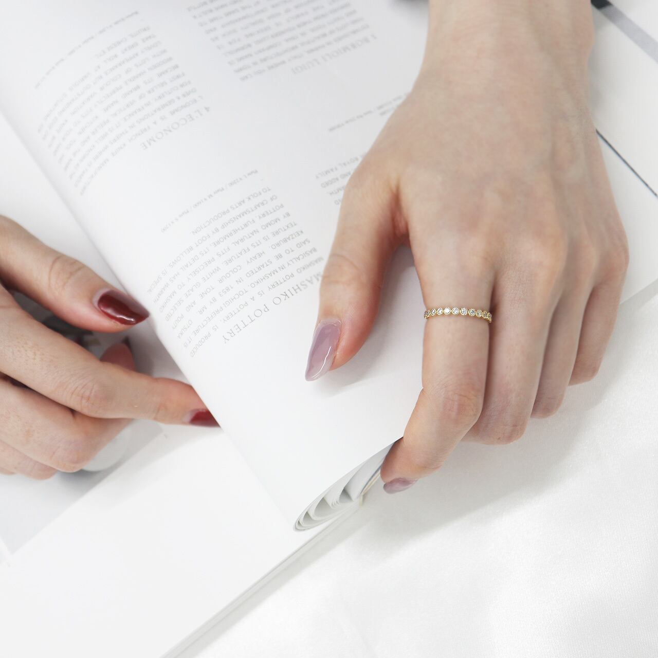 さりげない上品さを添える、大人のためのエタニティリングです。
